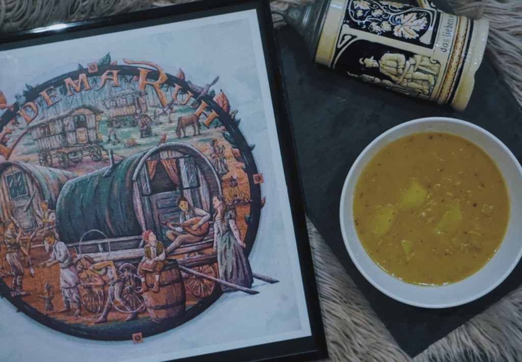 Hey all! I’ve decide to share some recipes here and there and figured it would be fun to pair them with my favorite books. I paired my take on potato leek soup with The Name of the Wind! I could just see the Edema Ruh (a traveling troupe, for those that haven’t read it) sitting around their wagons with a pot of this bubbling over the fire. Perfect for fall! Especially since Kvothe used to go forage in the forest to give his parents some *ahem* alone time. Leeks, potatoes, some broth, and a few extra ingredients and you’re all set. Even better, you can make this vegan or vegetarian very easily by omitting the cream and butter, and substituting the chicken broth for veggie broth! Most Potato Leek soups are purées but I like the texture of some chunky potatoes and sautéed leeks in mine.